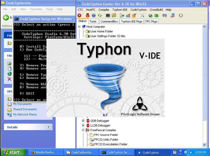 Appuyer sur la touche 1 puis sur la touche Enter. La fenêtre «CodeTyphon Center» s'affiche.