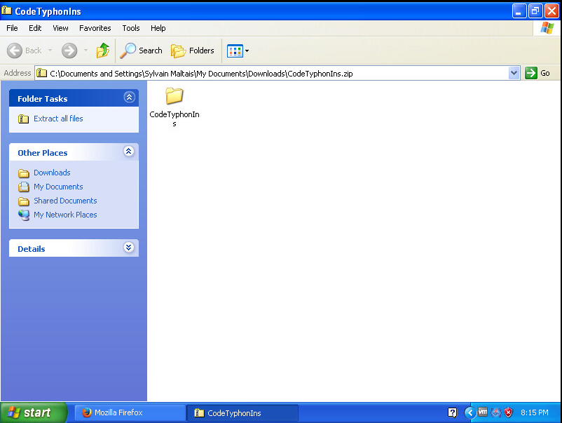 L'archive s'ouvre. Vous cliquez sur l'icône du dossier «CodeTyphonIns»