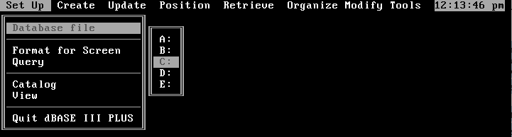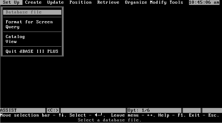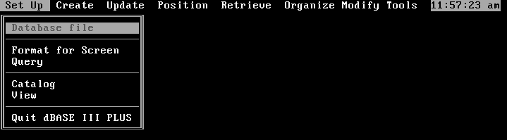 - Sélectionnez Quit dBASE III PLUS. Appuyez ensuite une fois. La surbrillance se déplace vers le fichier de base de données.