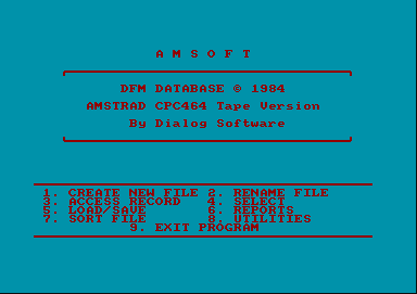 Le logiciel DFM Database est un programme de base de données de Dialog Software pour Amstrad CPC 464. Voici les principales caractérstiques :