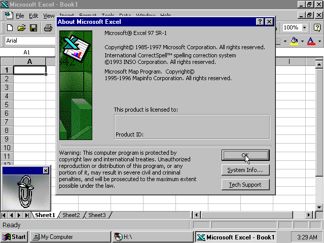 Le logiciel Excel 97 est le successeur de Excel 95. Le Excel 97 est inclus dans Office 97 (pour x86 et Alpha). Il s'agissait d'une mise à niveau majeure introduisant l'assistant de bureau trombone (Office Compagnon) et comportait le VBA standard utilisé au lieu d'Excel Basic interne. Il a introduit les étiquettes de langage naturel désormais supprimées.