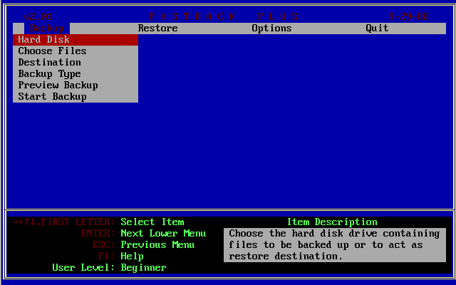Logiciel Fastback Plus, de Fifth Generation Systems, Inc, est un utilitaire de sauvegarde pour DOS. Sa principale caractéristique est qu'il peut lire et écrire à la fois sur une disquette et sur un disque dur en utilisant le DMA à double canal. Combiné à une compression rapide des données, il peut effectuer une sauvegarde très rapide.