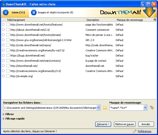 | Permet de télécharger toutes les fichiers d'une page Web et les mettres dans un dossier |