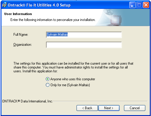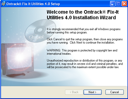 Voici les différentes étapes de l'installation de Fix-It Utilities 4.0 :