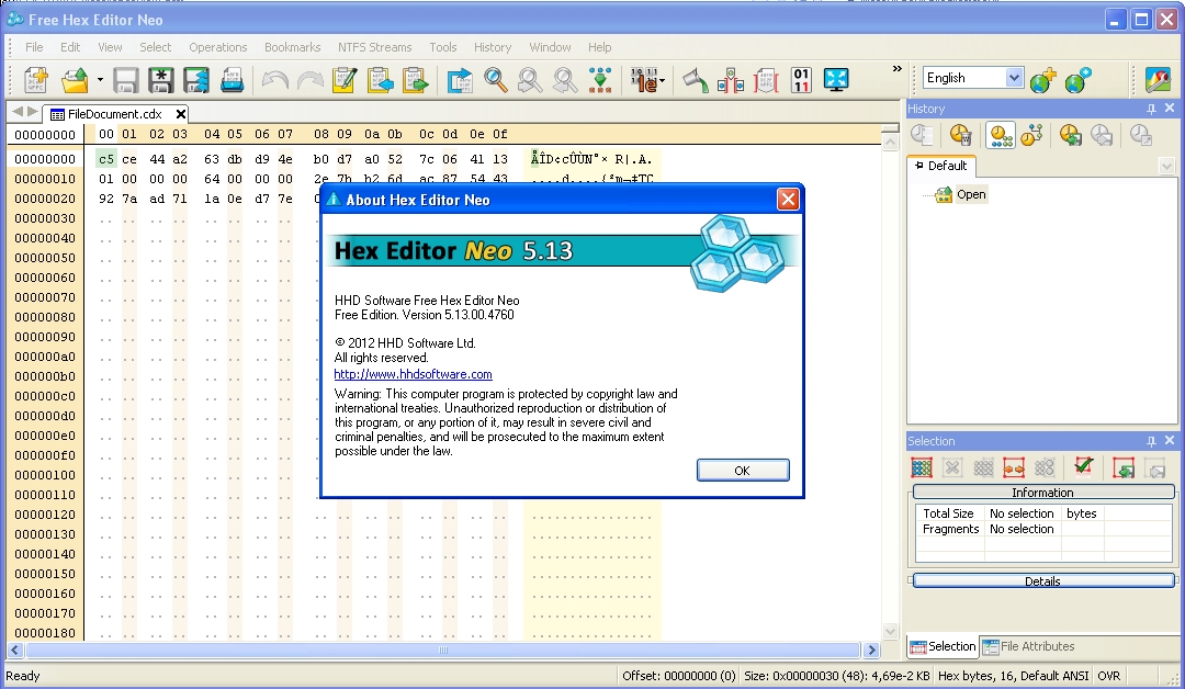 Ce logiciel est un excellent éditeur hexadécimal gratuit. Il est malheureusement beaucoup plus limite que ces versions payantes. Mais tout de même, il permet de visualiser n'importe quel fichier sous la forme d'une vue hexadécimale. De plus, il est également possible de modifier et de sauvegarder le contenu. Il support 7 langages humains (HAL) dont le français. La seule critique, c'est comme pour de nombreuses autres options, celle permettant de gagner du temps, comme le désassembleur, l'accès au flux NTFS, et les opérations binaires, il faut passer à la version payante... Malgré cela, c'est un bon commencement.