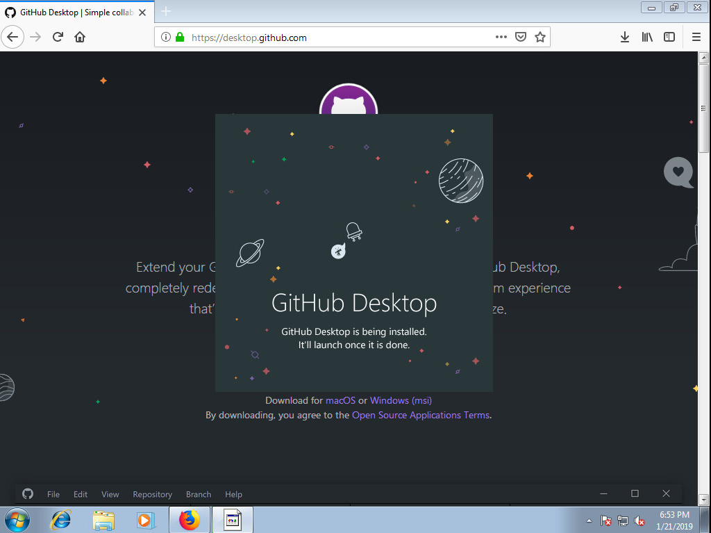 Fait surprenant, il n'y a aucun détail pour indiquer où installer GitHub Desktop, il passe directement à l'installation sans prévenir. Vous le laissez continuer.