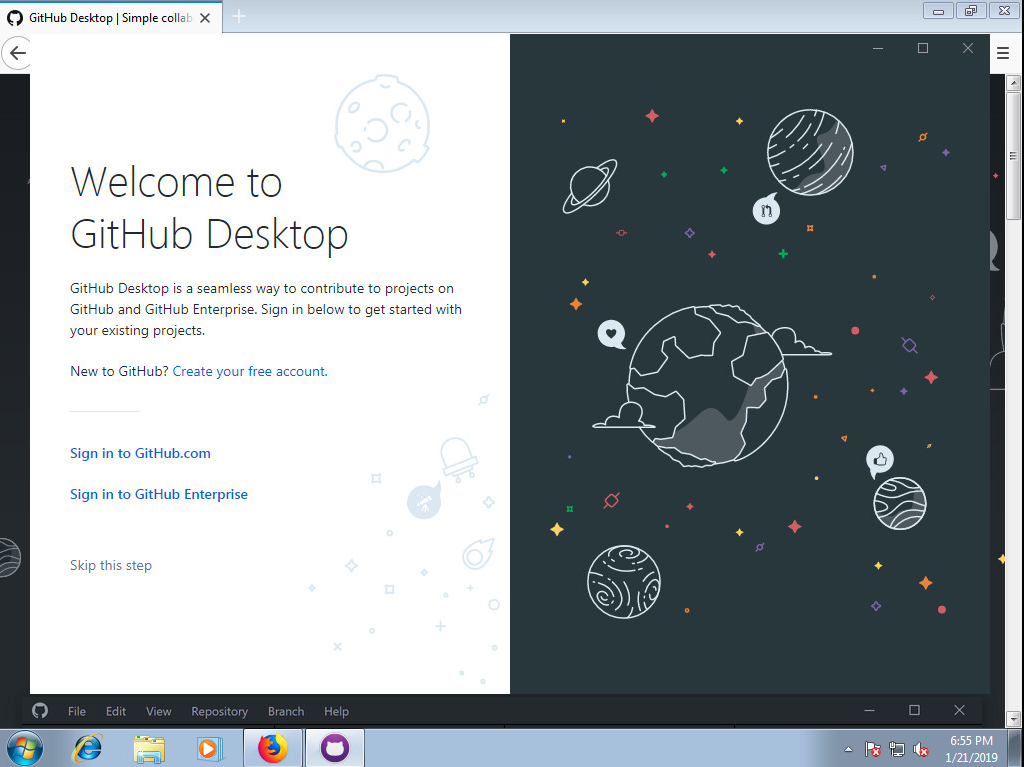Finalement, au bout d'un certain temps, il affiche la page de bienvenue de GitHub Desktop, vous êtes maintenant près utiliser GitHub Desktop :