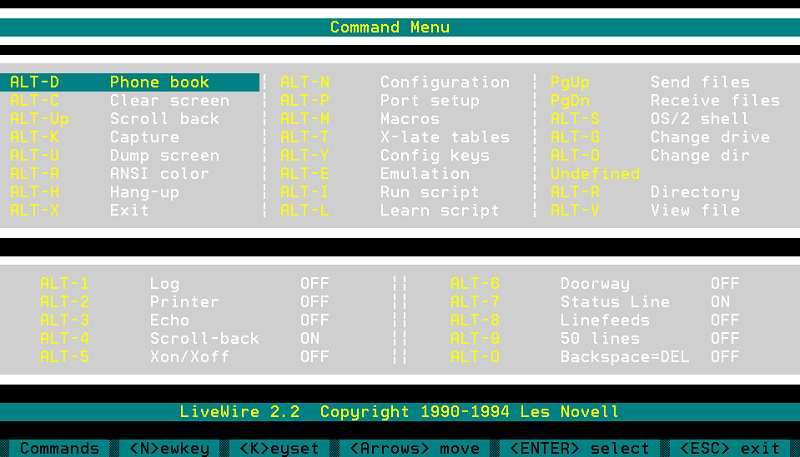 - Il prend en charge les jeux de clefs Procomm+, Qmodem, Boyan, Telex et LiveWire Communications (ces options sont fournies pour réduire le temps nécessaire à l'apprentissage de LiveWire Communications en fournissant des commandes de touches familières).