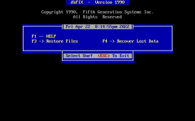 Cette commande permet de récupérer et de réparer les fichiers dBase étant perdus ou corrompus. Elle copie les fichiers sur un autre unité de disque.