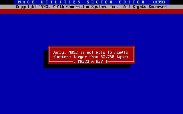 Cette commande permet de lancer le «Mace Utilities Sector Editor» : peut être utilisé pour modifier des disques et récupérer des données perdues ou illisibles.