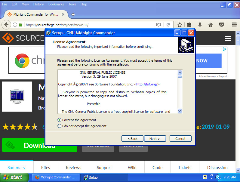 Vous sélectionnez le bouton radio «I accept the agreement» et vous cliquez sur le bouton «Next >» :