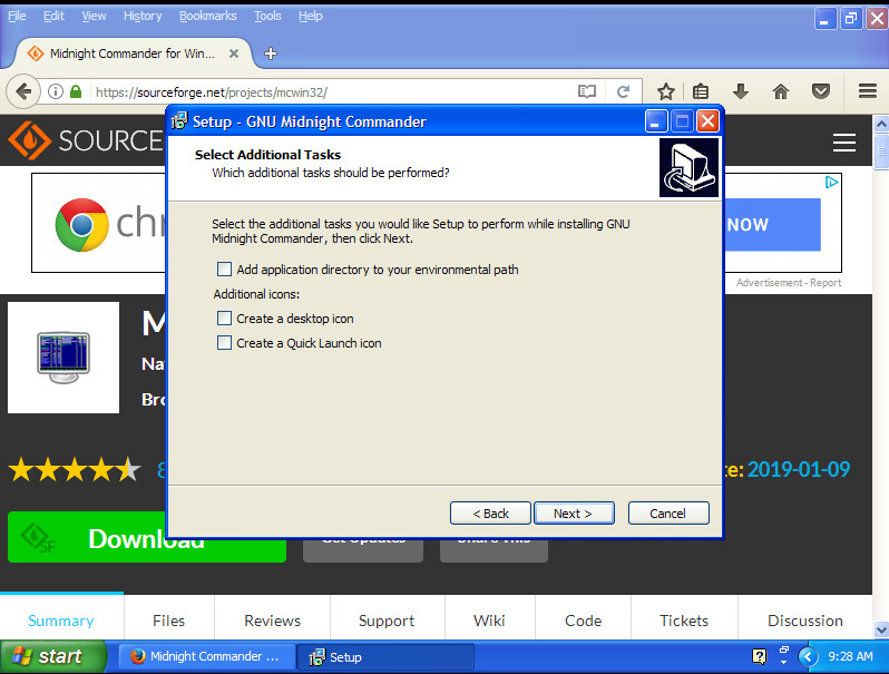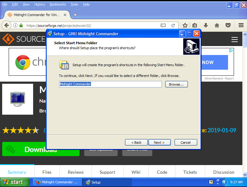 Il indique dans quel dossier du menu démarrer sera installé le logiciel Midnight Commander. Vous cliquez sur le bouton «Next >» :