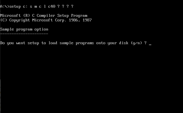 Voici les différentes étapes d'installation du Microsoft C 5.0. Exécuter le programme SETUP.EXE :