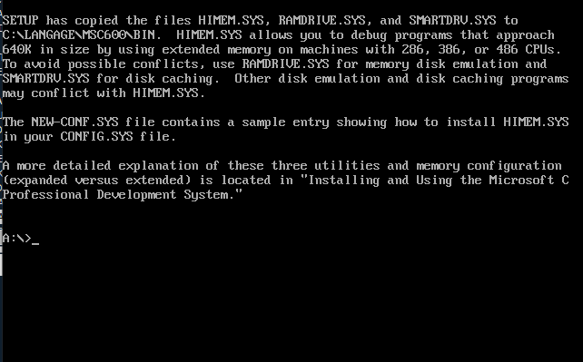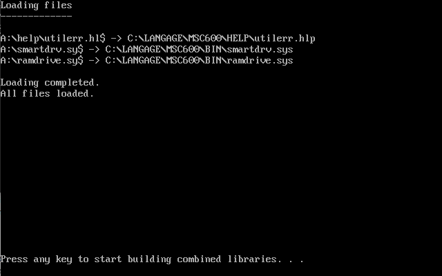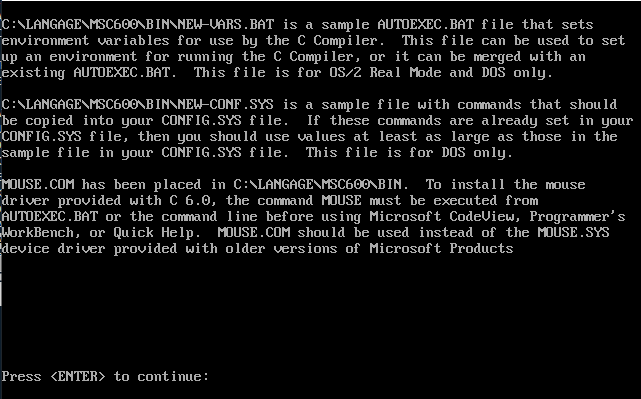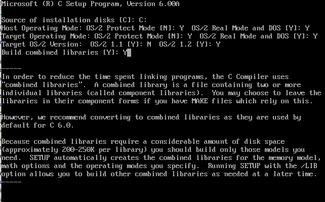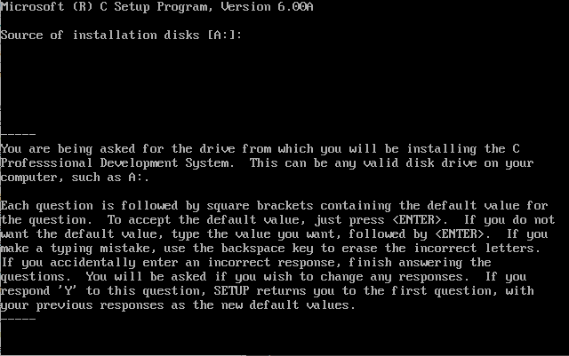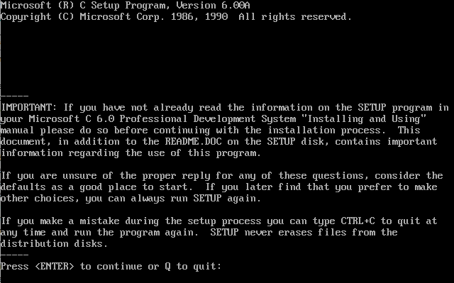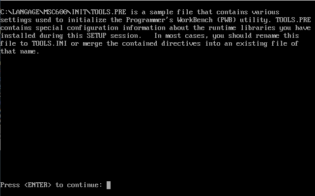 Voici les différentes étapes d'installation du Microsoft C 6.0a. Exécuter le programme SETUP.EXE :