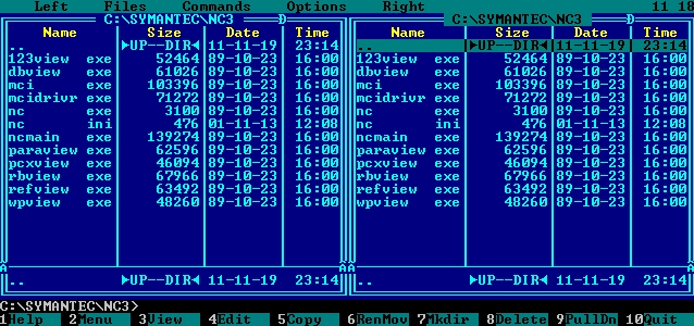 En 1989, sortant du coeur de l'entreprise Norton Computer, un logiciel fort simple à l'origine avec l'idée d'avoir deux panneaux pour les fichiers, permet de rendre tellement plus simple l'utilisation d'un prompt DOS !