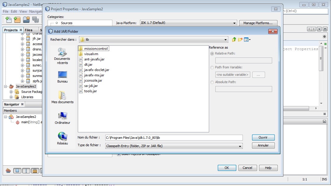 Le «classpath» permet d'indiquer, au compilateur Java, dans quel dossier sont situés les classes qu'utilisera le compilateur pour compiler le programme Java. Voici les différents pour pouvoir effectuer la modification du classpath dans un projet ouvert dans l'IDE de NetBeans.