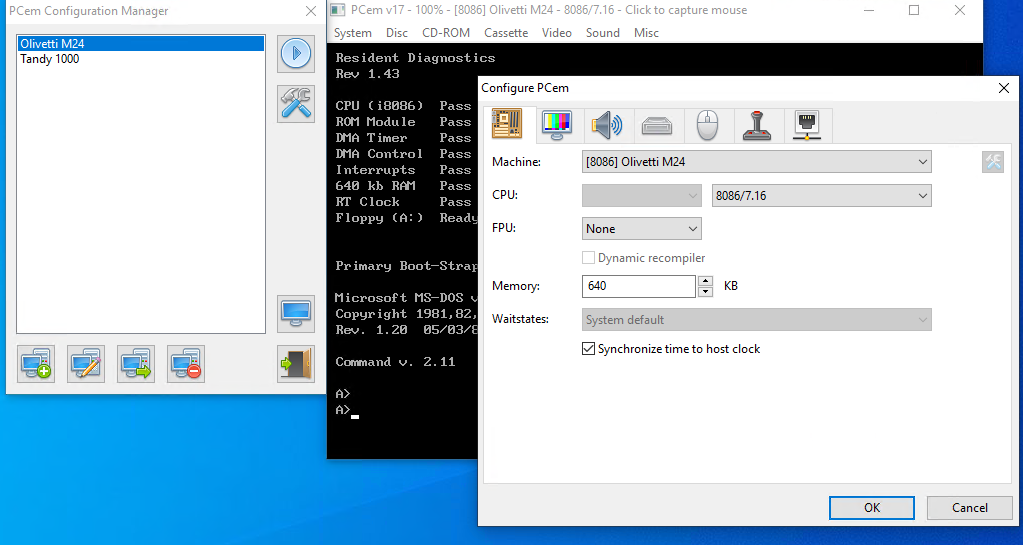 Le logiciel PCem est émulateur de microprocesseur 8086 permettant d'émuler des anciens micro-ordinateurs comme l'Olivetti M24 et des Tandy 1000 sous les systèmes d'exploitation Windows ou Linux. Le logiciel possède une licence GPL v2.0 mais contient aucune ROM avec le logiciel, il faut donc télécharger sur un autre site les ROM nécessaire à son bon fonctionnement.