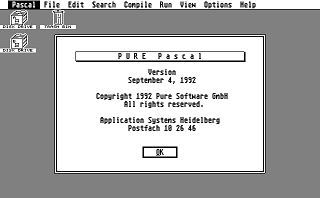 Le logiciel PURE Pascal est un IDE et compilateur Pascal destiné à la plateforme Atari ST. Il s'agit d'un compilateur Pascal assez proche des idées du HighSpeed Pascal et entièrement compatible avec le Turbo Pascal 7. De plus, il intègre certain utilitaire intéressant comme le PASM, un compilateur assembleur 68040.