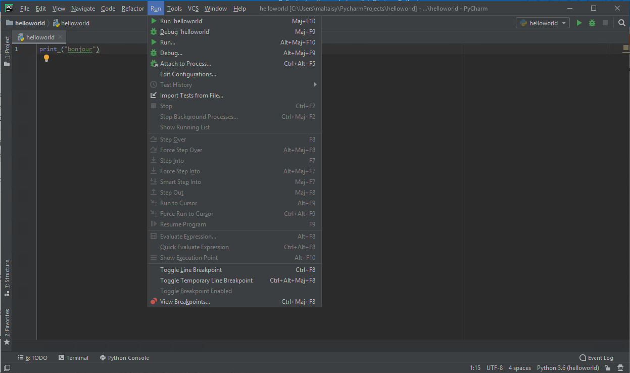 Le logiciel PyCharm est un IDE commerciale pour Python vraiment très puissant. Il a une capacité d'analyse du code et retourne des avertissements pertinents. Il offre la possibilité d'installer les modules manquants, d'exécuter le code, et de le déboguer.