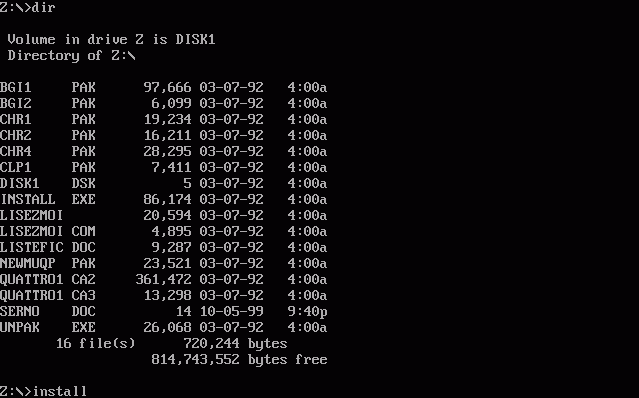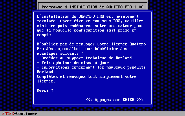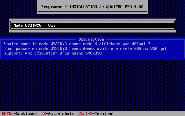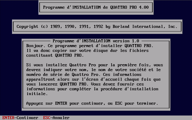 Ensuite on suit les étapes appropriés. La présentation dans cette page a été faite sur PC DOS 2000. Voici l'écran de présentation lorsqu'on entre dans l'installation :