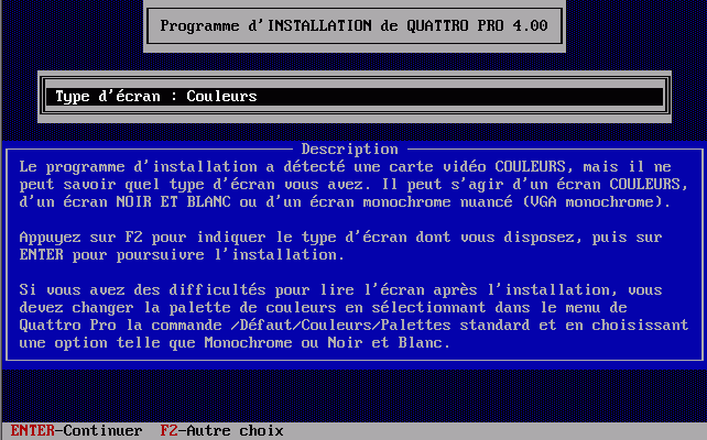Ici, on nous demande de choisir le type d'écran que vous possédez: Couleur ou monochrome