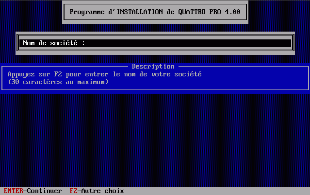 Ici, on nous demande d'entrer le nom de l'entreprise détenant la licence du logiciel