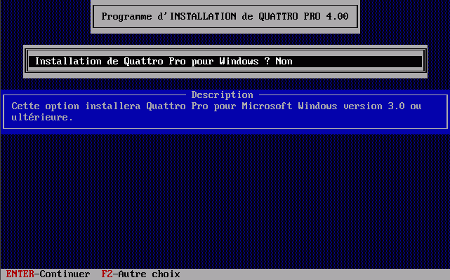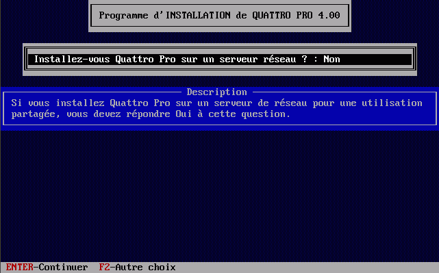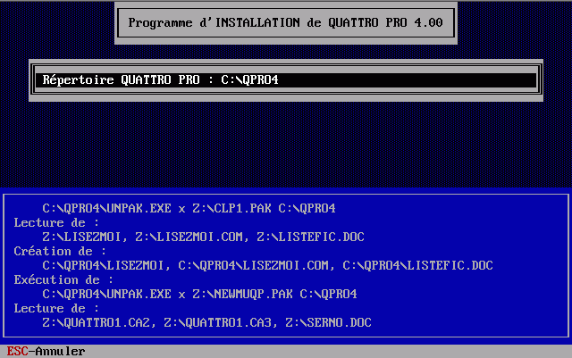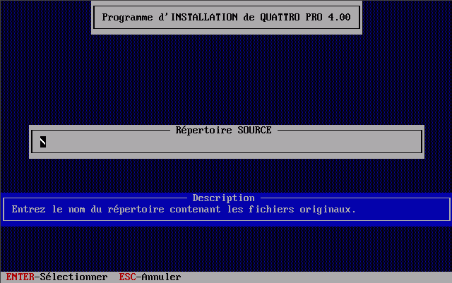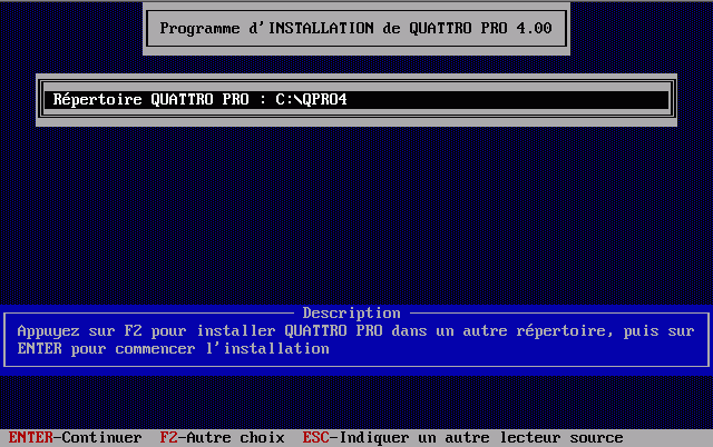 Ici, on nous demande d'indiquer le répertoire d'installation où seront situé les fichiers de Quattro Pro