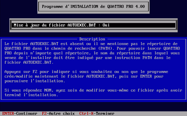 On demande si le fichier «AUTOEXEC.BAT» doit être mise à jour :