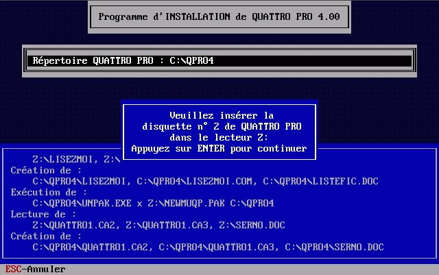 Ici, on nous demande d'insérer la deuxième disquette d'installation
