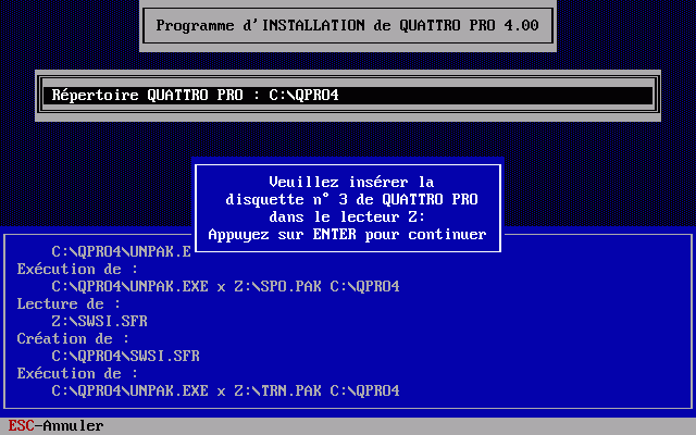 Ici, on nous demande d'insérer la quatrième disquette d'installation
