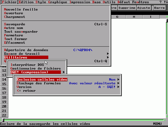 Le logiciel Quattro Pro 4 pour DOS est un tableur très semblable au logiciel Lotus 1-2-3 de l'époque par l'entreprise Borland. Il s'agissait d'un chiffrier électronique très complet fonctionnant en mode graphique sans aucune utilisation de pilote graphique externe (ainsi, il supporte les cartes vidéo EGA ou VGA nativement). Ce détail est assez exceptionnel, puisque les logiciels du système d'exploitation DOS de l'époque mise uniquement sur les écrans de texte. Pour lancer le logiciel en ligne de commande DOS :