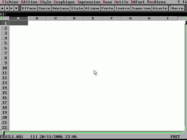 Voici l'écran de travail (on remarquera qu'on considérait comme des icônes les boutons «Efface», «Copie», «Déplace»,...) :