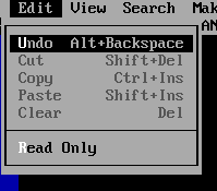 Dans le menu Edit, vous manipulez du texte en supprimant (Clear), coupant (Cut), copiant (Copy) et collant (Paste) des lignes de code. Vous pouvez également définir l'état Read Only pour protéger les fichiers source.