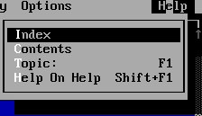 Le menu Help est un moyen d'accéder au système d'aide en ligne, comme par exemple la liste des fonctions (Index), le sommaire des sujets (Contents),...