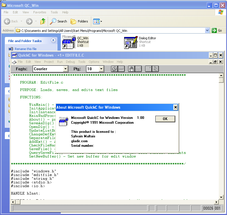 Le logiciel QuickC for Windows a été le premier environnement de développement (IDE) fonctionnant entièrement sous Windows de Microsoft. Il comprend un éditeur d'interface graphique avec mise en évidence de la syntaxe, un débogage intégré, un éditeur d'images et un éditeur de dialogue. Il comprend des bibliothèques prédéfinies pour le portage des applications en ligne de commande et le développement de l'interface graphique Windows. Il peut générer des exécutables Windows, des DLL et des exécutables DOS. Bien qu'officiellement, il fonctionne sous Windows 3.0 et Windows 3.1, il peut fonctionner sous Windows 95, Windows 98, Windows Me et Windows XP.
