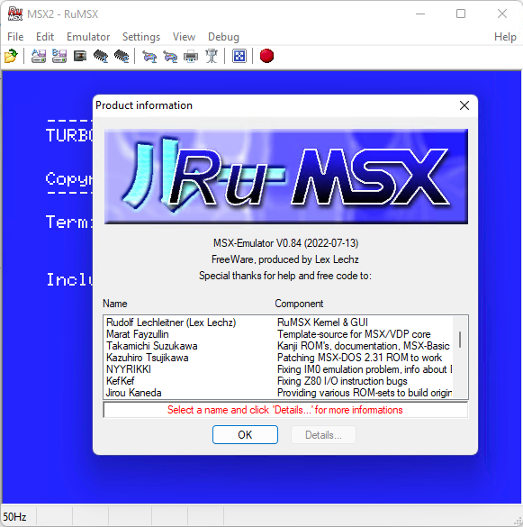 Le RuMSX est un émulateur Open Source pour MSX. Le RuMSX a été l'une des premières émulations MSX pour la plate-forme Windows en 32 bits. Le principal problème est qu'aucun des émulateurs existants n'est vraiment complet. Pour terminer un tel projet avec succès, il faut que cet émulateur soit FreeWare. Entre-temps, de nombreuses autres émulations basées sur Windows sont arrivées. Le RuMSX est un bon émulateur permettant d'émuler le MSX Basic, MSX-DOS, Norton MSX Utilities 3.20 et le Turbo Pascal for CP/M avec succès.