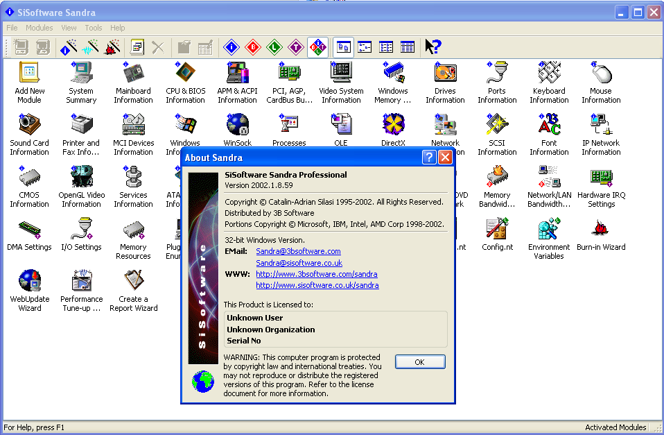 Le logiciel SiSoftware Sandra permet de fournir différentes informations sur le matériel et à un niveau assez profond. De plus, il permet d'analyser les performances du systèmes. Le logiciel SiSoftware Sandra suit les différentes versions de Windows depuis Windows 95 et a continuer à s'adapter au nouvelles versions au fil des années. Il 5 éditions dériver de se produit, soit Lite, Personal, Business, Tech Support et Enterprise.