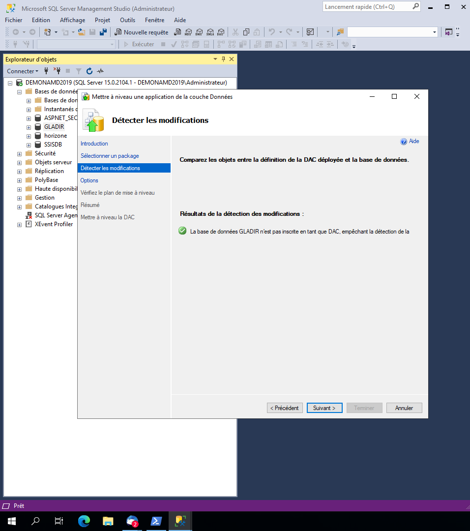 - Les informations contenues dans le DACPAC sont comparées à la base de données cible :