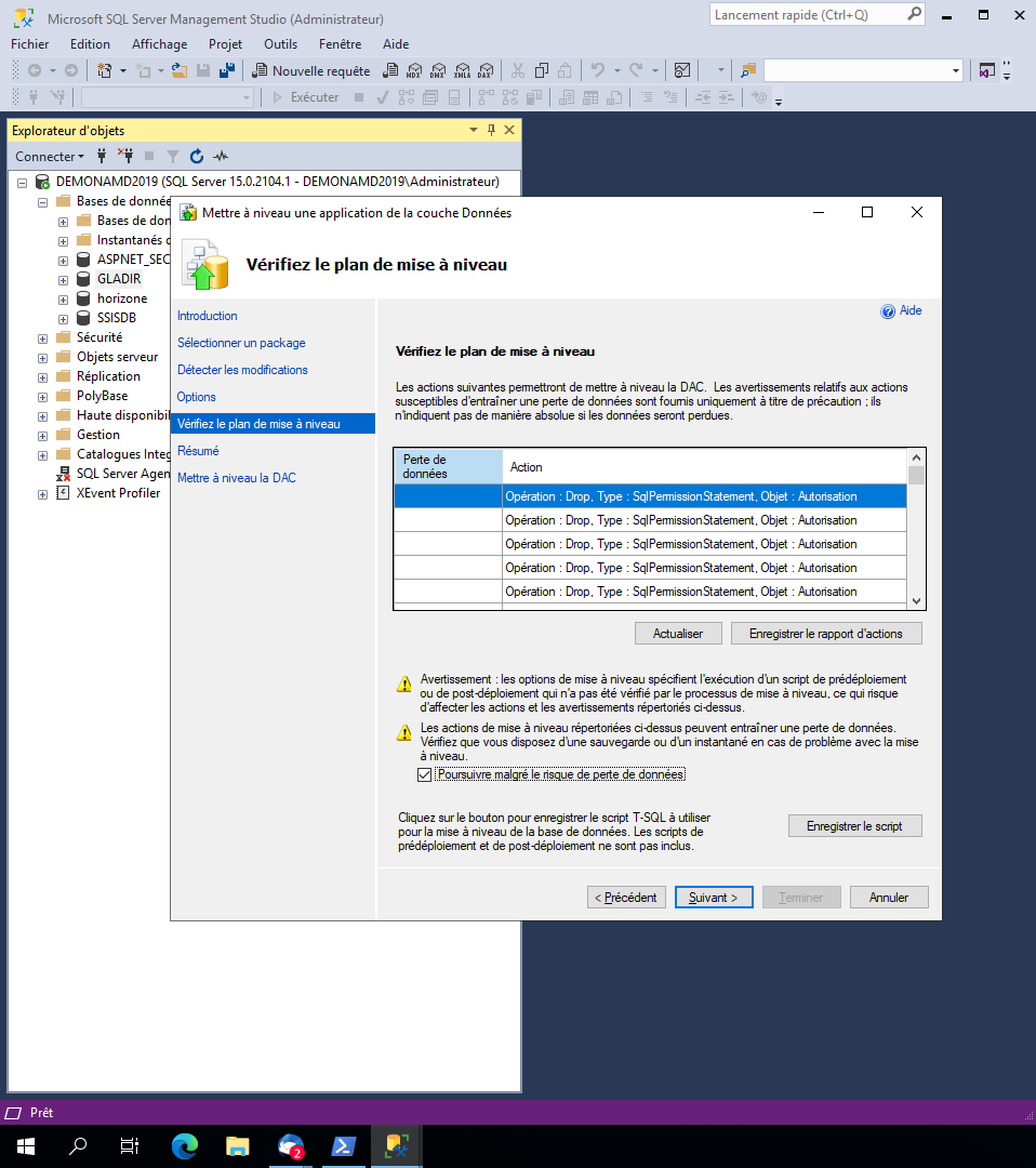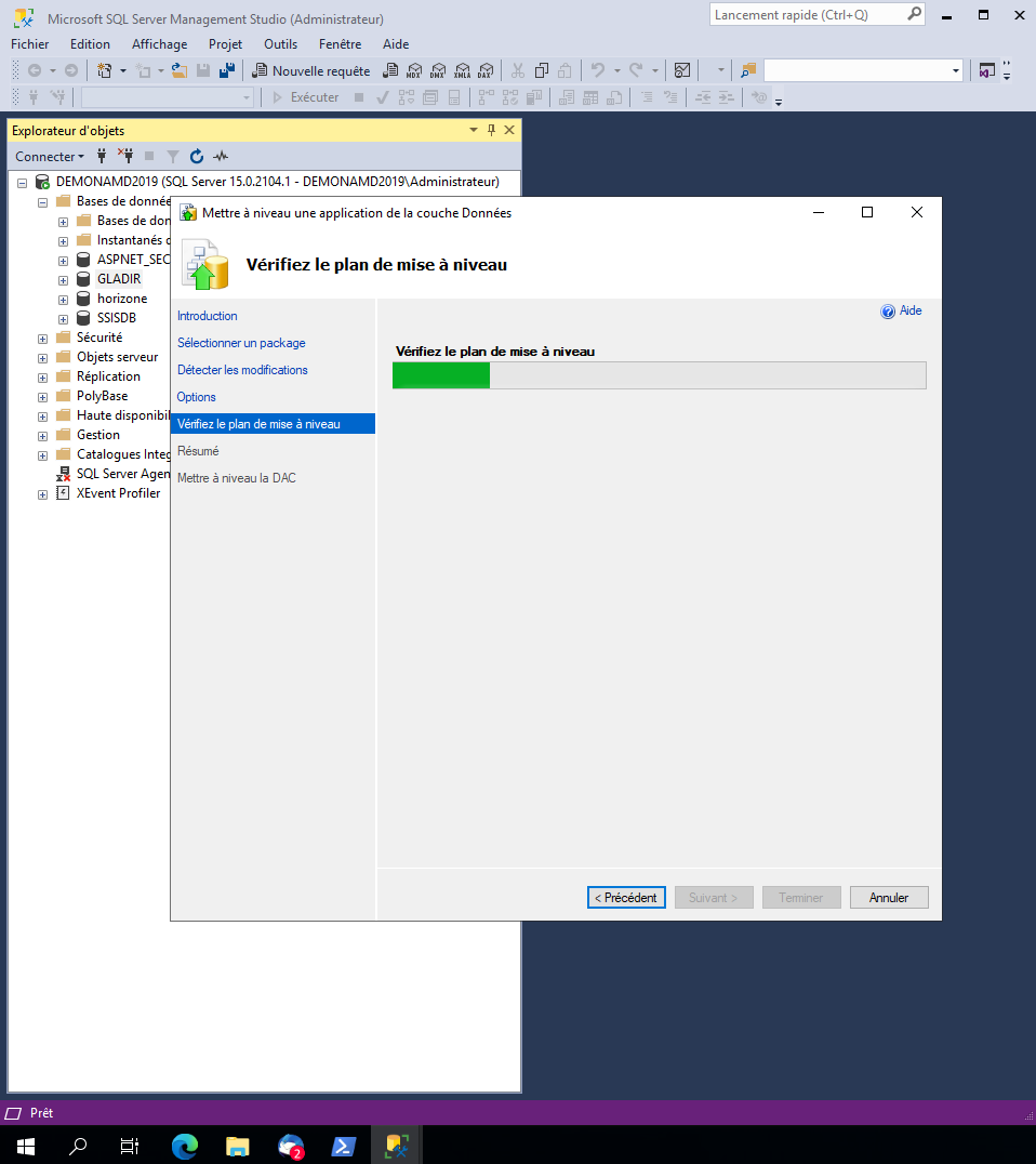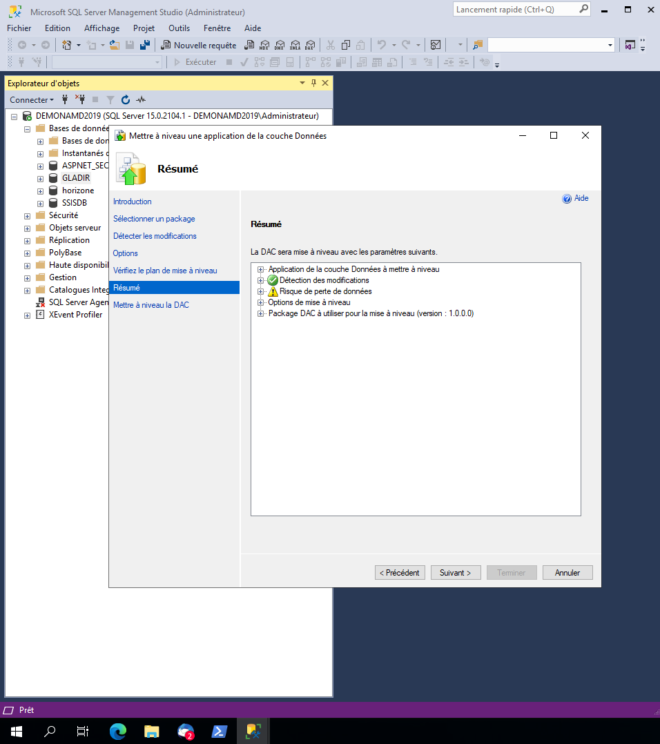 - Il affiche l'assistant «Mettre à niveau une application de la couche Données» ou «Upgrade Data-tier Application wizard». Il présente l'ensemble des étapes que l'assistant va exécuter.