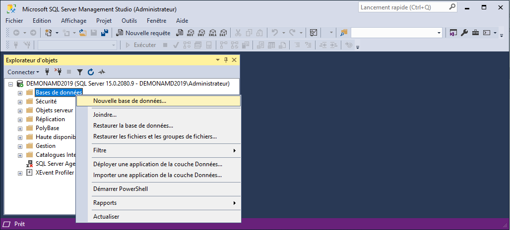Gestion des bases de données à l'aide de l'explorateur d'objets (Object Explorer)