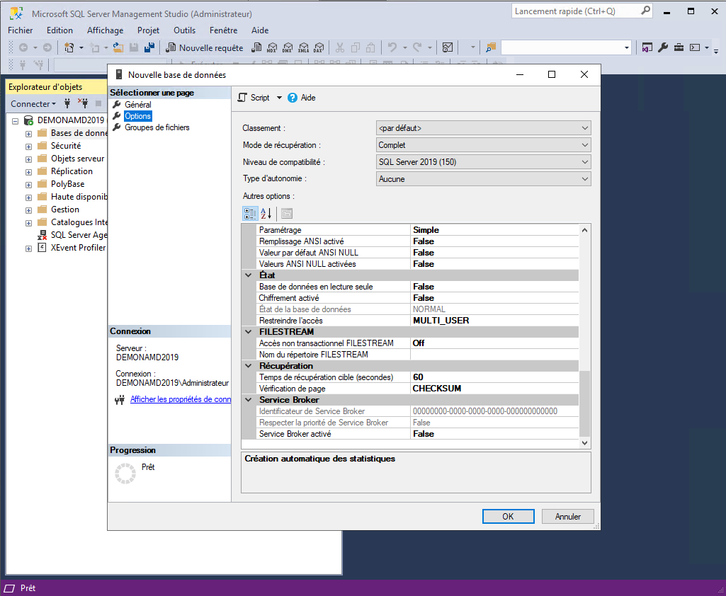 - État de la base de données ou Database State Décrit l'état de la base de données. (La valeur par défaut est NORMAL.)
