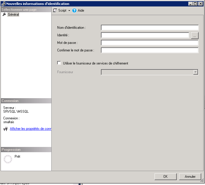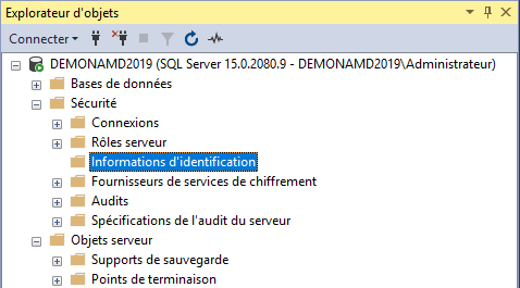 Ce dossier contient les informations d'identifications SQL Server, aussi nommé Credentials en anglais, pour définir les informations d'authentification requises pour une ressource extérieure à SQL Server dans un modèle physique SQL Server.