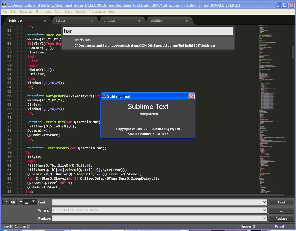 Pensez différemment, tel est ce logiciel, une pépinière d'idée ! Disponible pour Mac OS X, Linux et Windows, ce logiciel est une alternative intéressante face à Notepad++. Fait assez inusité l'installateur est écrit en langage de programmation Python. Il comprend le langage de programmation que vous écrivez et il peut vous proposer des noms de fonctions ou de classes dans la mesure du possible. Il est possible aussi d'ajouter des plug-ins en Python s'intégrant très facilement. La recherche «Goto anything» permet d'avoir un aperçu live lorsqu'on tape le texte à rechercher, ainsi il fouillera automatiquement dans le texte au fur et à mesure que l'on effectue des recherches.
