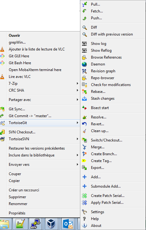 Le TortoiseGit peut être utilisé en même temps que TortoiseSVN à condition bien sûre de faire des ajustements dans le dossier du projet, car l'un utilise le dossier «/.git/» et l'autre le dossier «/.svn/». Ainsi, en utilisant le fichier «.svnignore» dans la racine du projet pour SVN avec la mention :