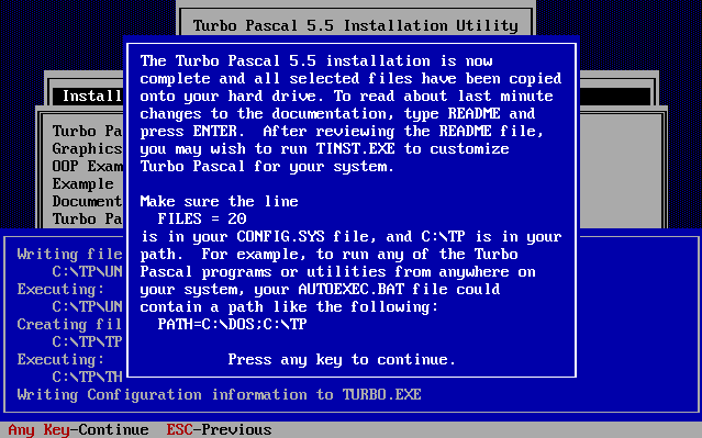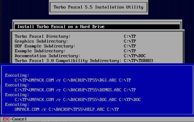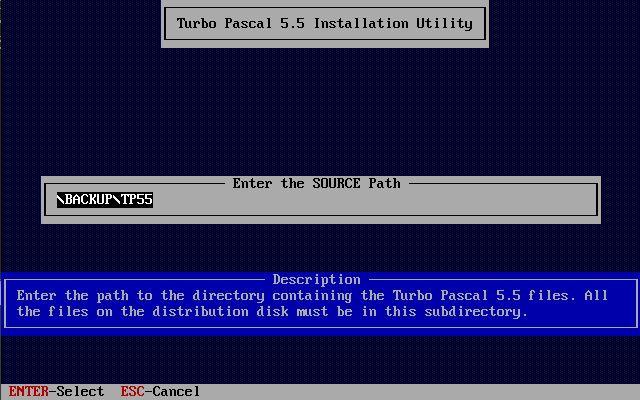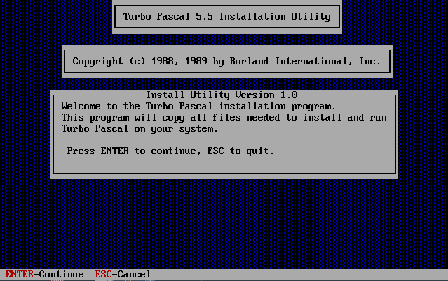 Voici les différentes étapes d'installation du Turbo Pascal 5.5. Exécuter le programme INSTALL.EXE :