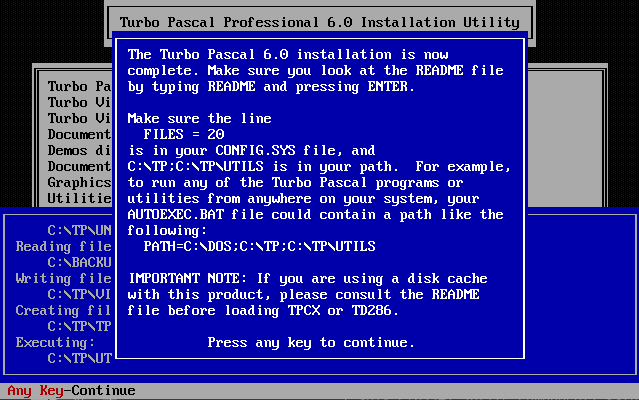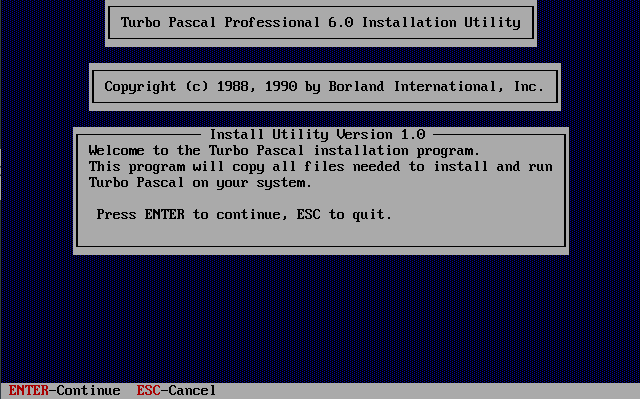 Voici les différentes étapes d'installation du Turbo Pascal 6.0. Exécuter le programme INSTALL.EXE :