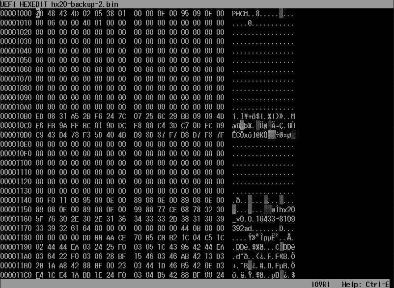 L'exemple suivant permet d'éditer un fichier nommé ec-backup-bin situé sur «fs0:» :