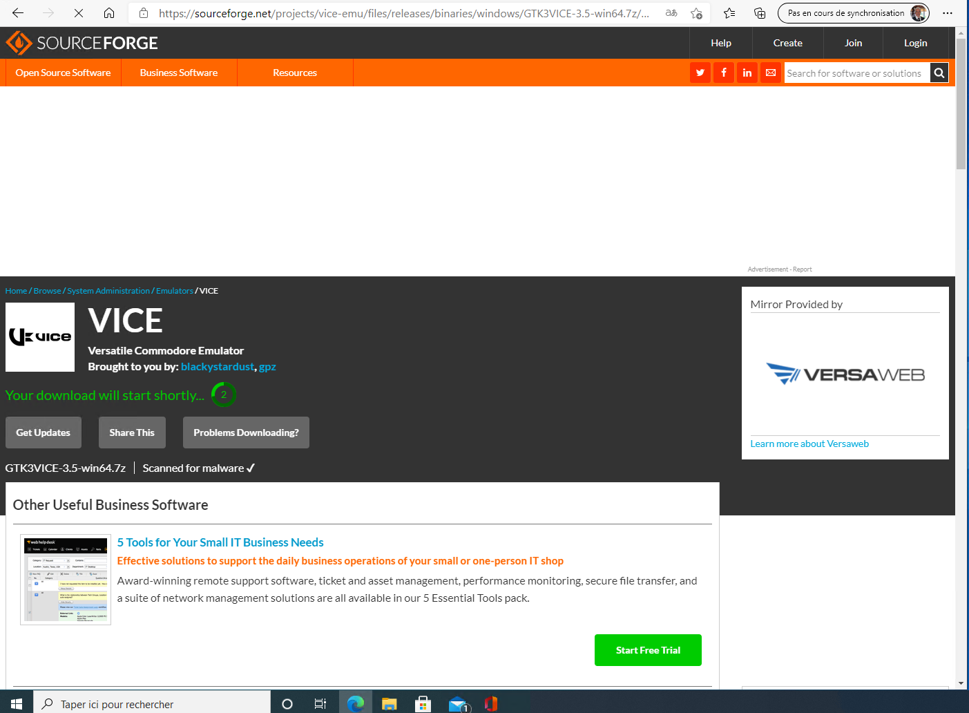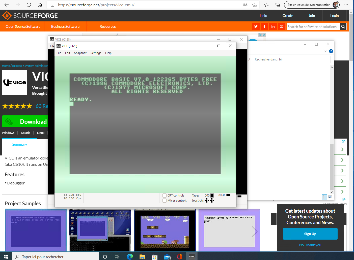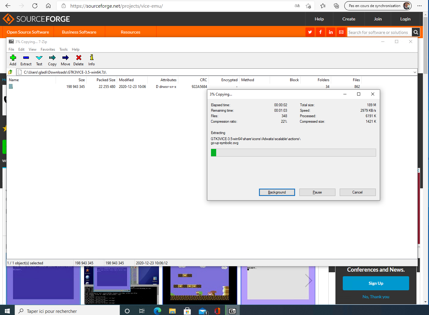 L'installation du logiciel du VICE sous Windows 10 se fait de la manière suivante. Vous devez tout d'abord allez sur le site du VICE au lien suivant https://vice-emu.sourceforge.io/index.html#download. Vous cliquez sur la lien VICE x.x (dans l'exemple suivant VICE 3.5) la liste Windows :