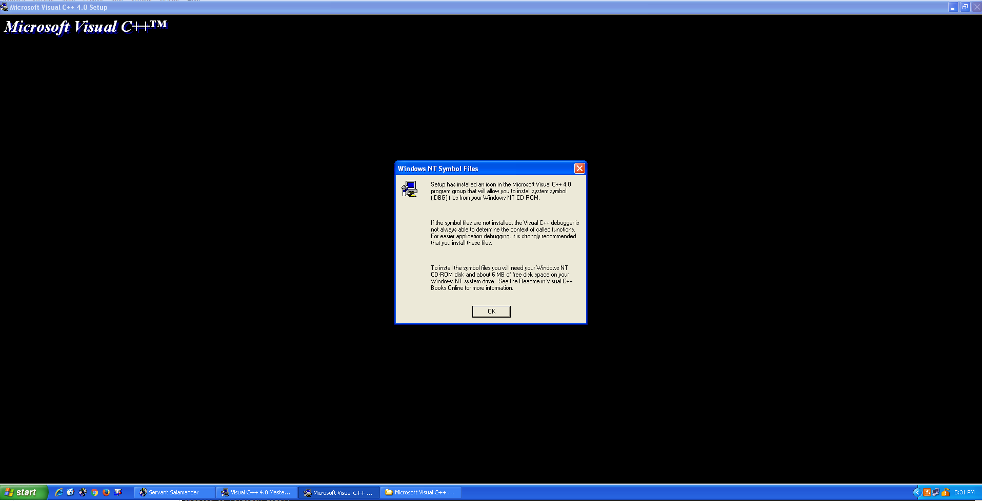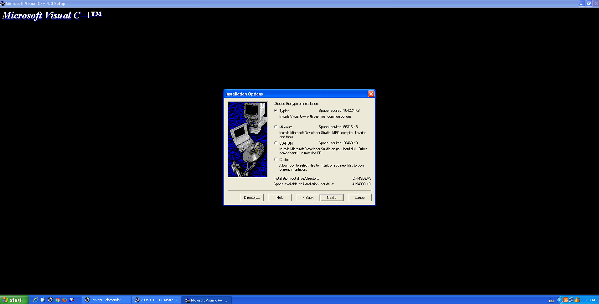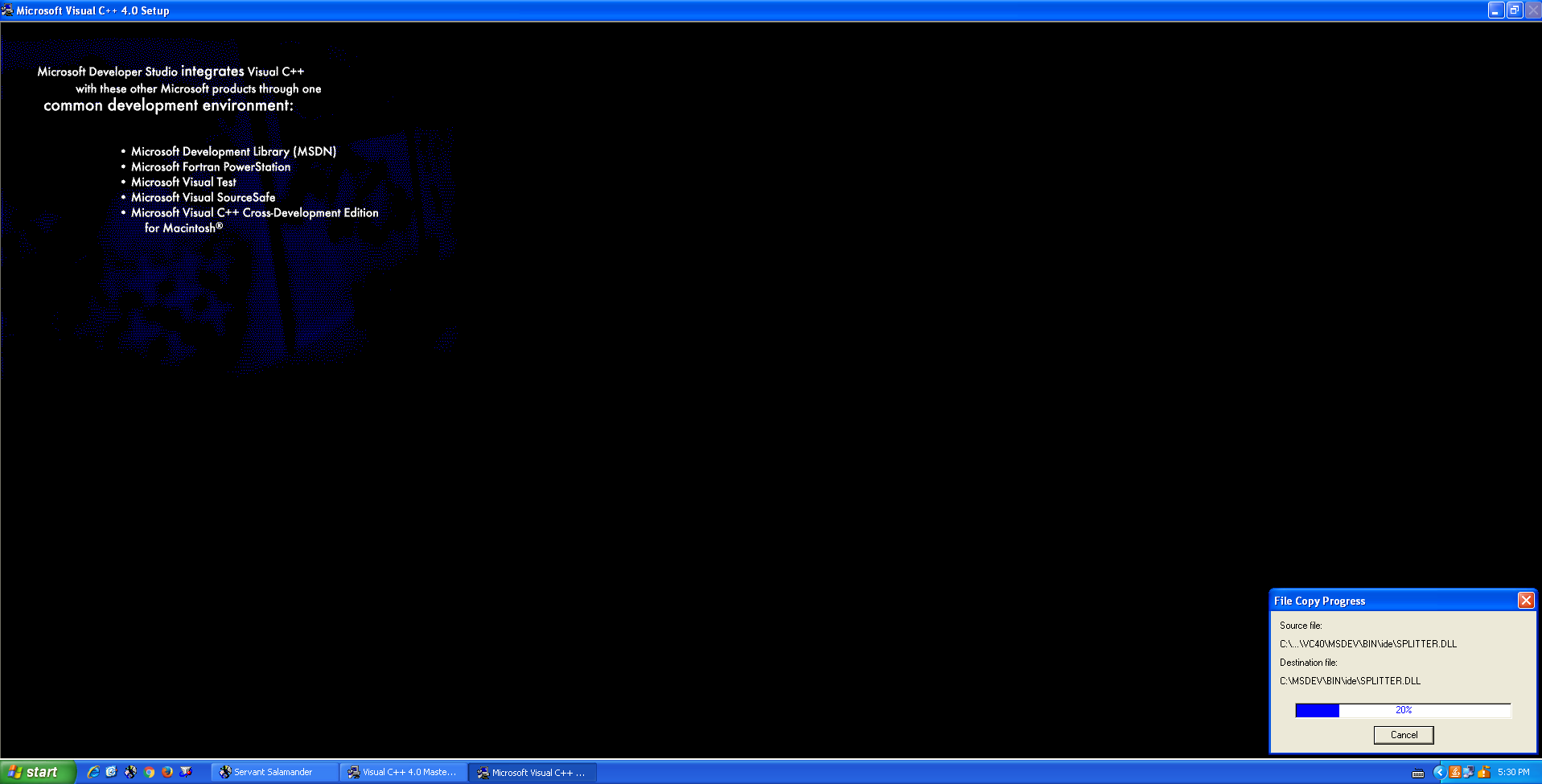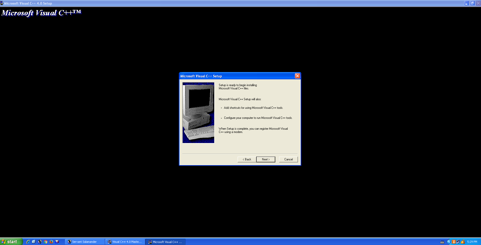 Voici les différentes étapes d'installation du Visual C++ 4.0 :