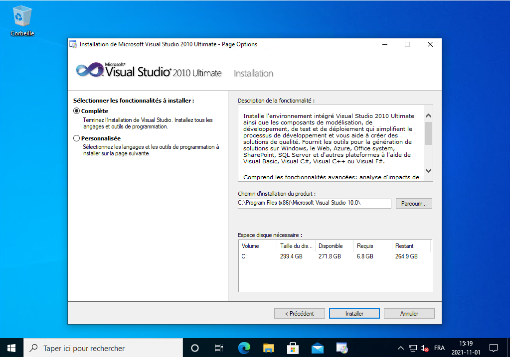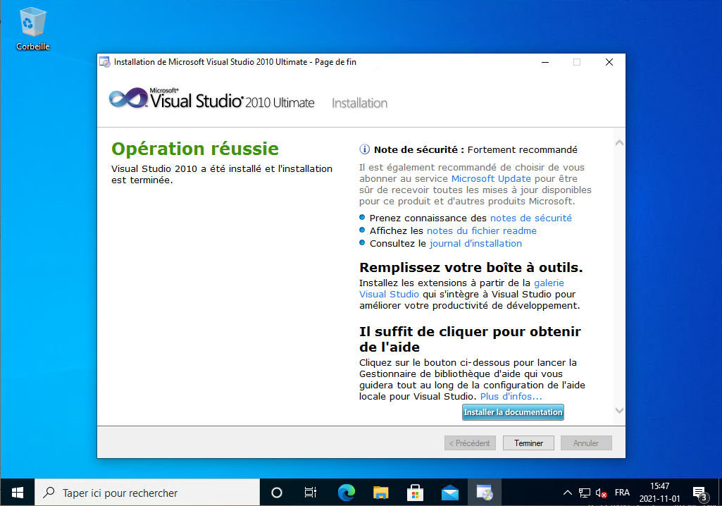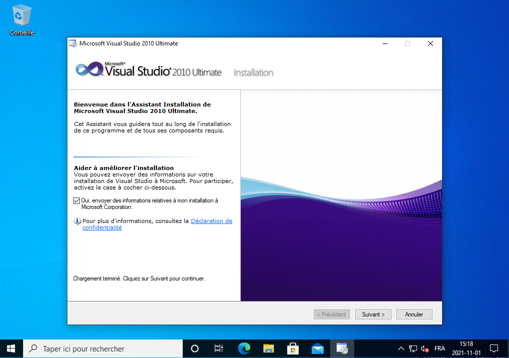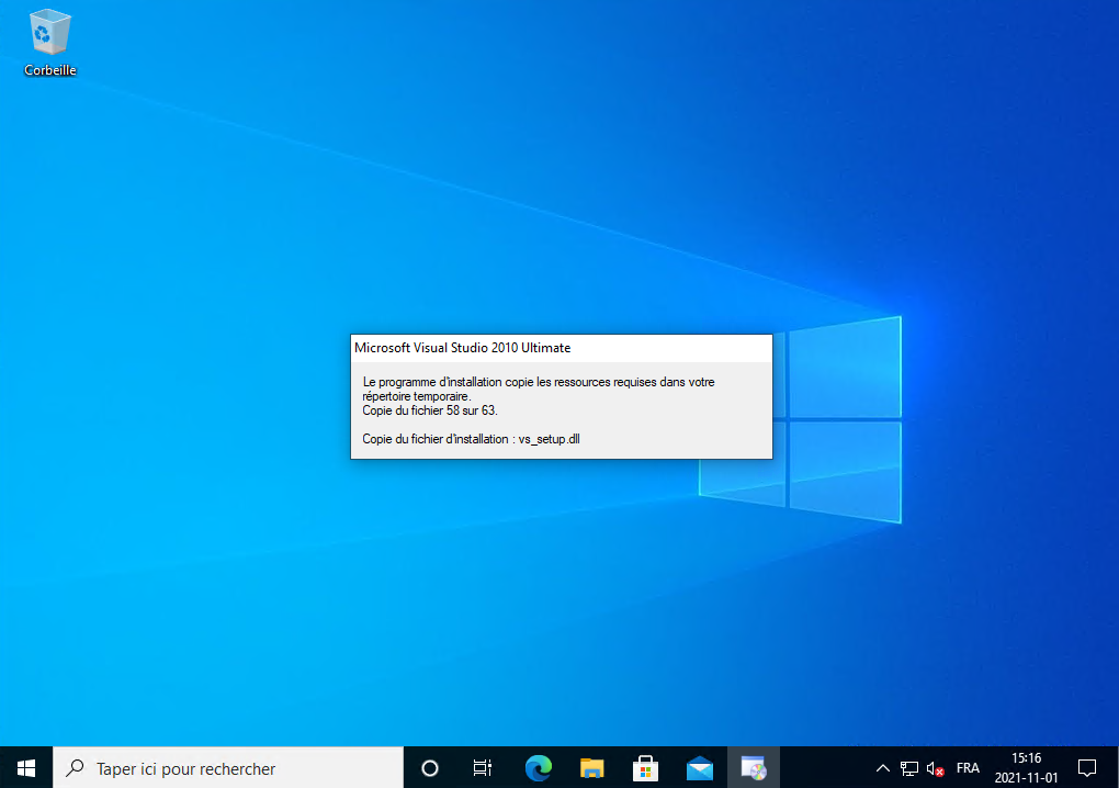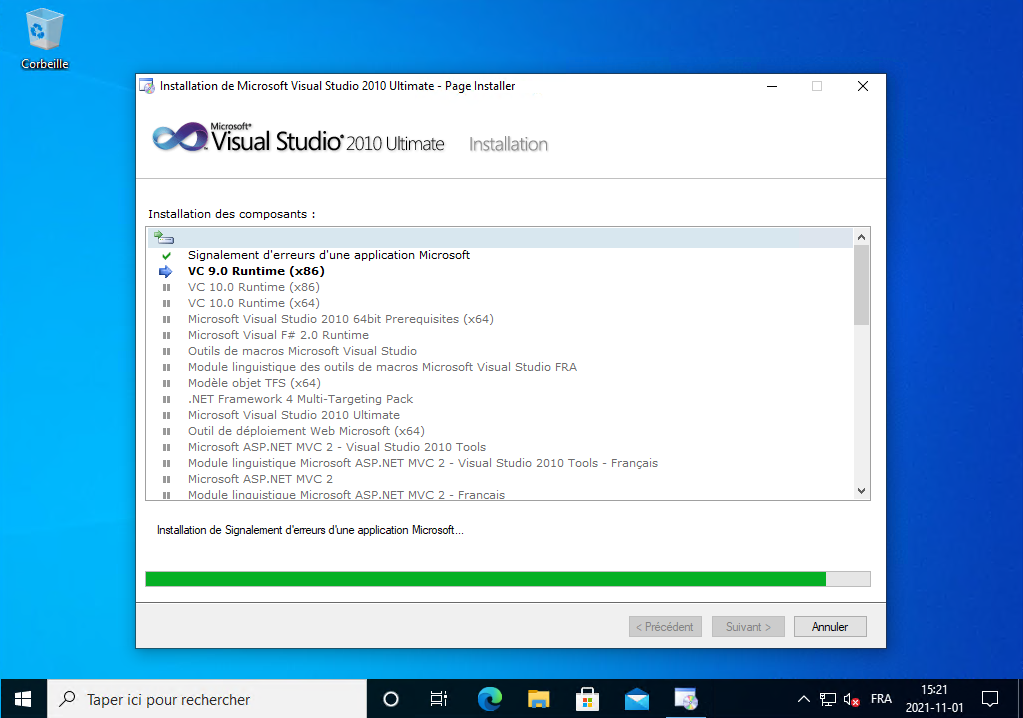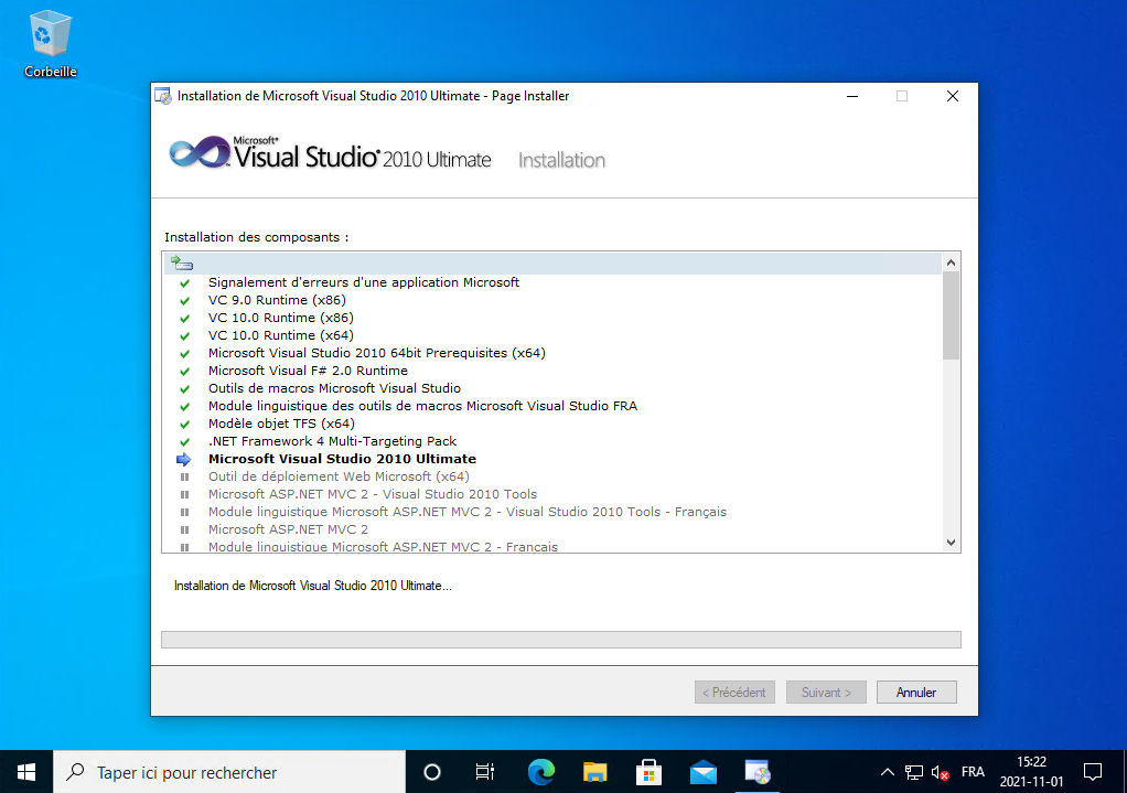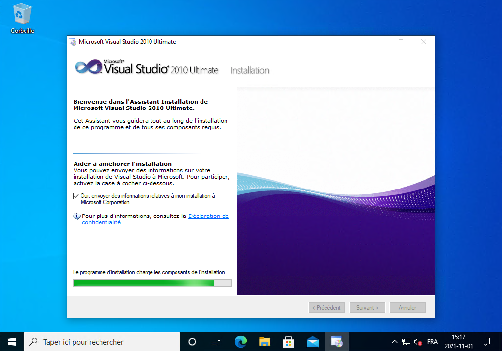 Il installe Visual Studio 2010, vous le laissez continuer :